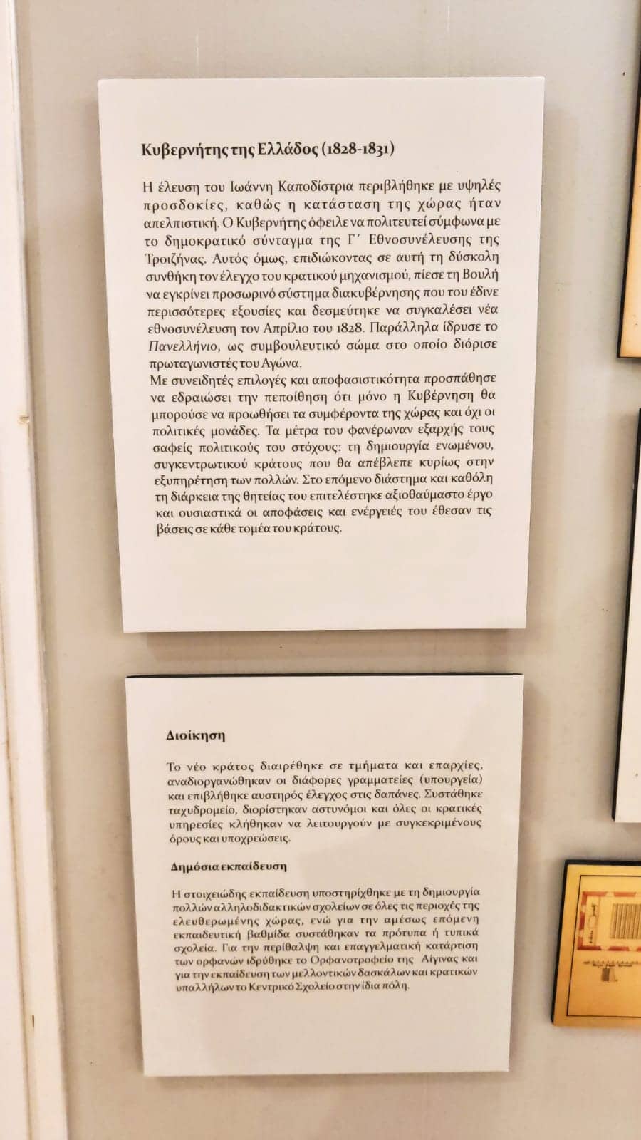 Η έκθεση βασίζεται στο υλικό της έκθεσης της Βιβλιοθήκης της Βουλής που διοργανώθηκε το 2016 με τίτλο «Ιωάννης Καποδίστριας: η πορεία του στο χρόνο». Παράλληλα δίνεται έμφαση στην σχέση του Ι. Καποδίστρια με τη Μεθώνη και τους κατοίκους της.